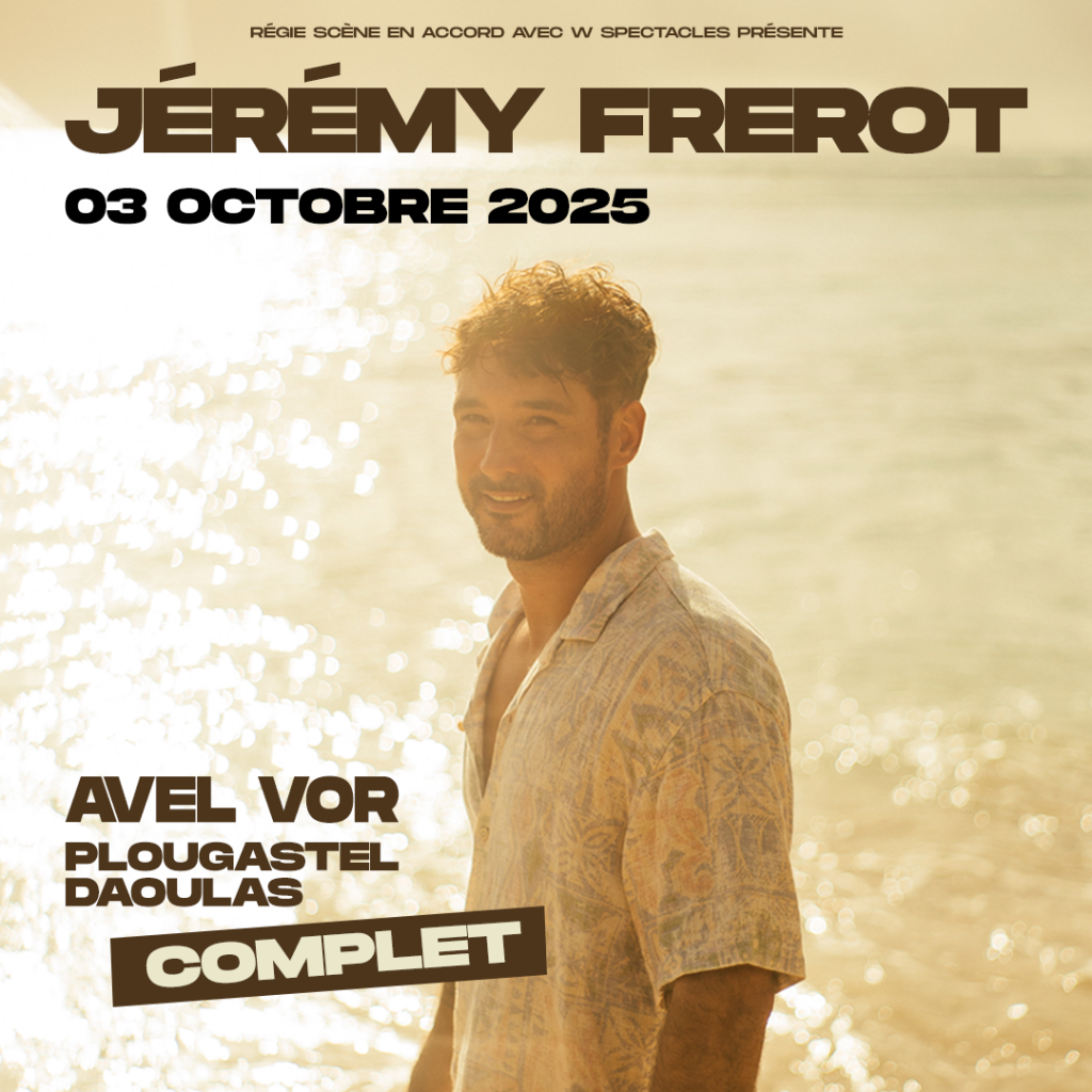 CONCERT COMPLET | Après avoir connu six années de succès au sein du duo star Fréro Delavega, en 2017 Jérémy Frerot a pris son envol en solo et est parvenu à s’imposer avec un premier album, Matriochka (2018), suivi de Meilleure vie (2021), certifiés disques d’or, et de chansons abordant des thèmes sensibles, tels que l’écologie et le respect de l’océan, une passion pour cet artiste qui vit au bord de l’Atlantique. Depuis, il égrène les succès avec la régularité d’un métronome. Rêveur éveillé, Jérémy Frerot aime les utopies, les idées en puissance et leur accomplissement. Sincère et émouvante, sa musique est le fruit d’une quête d’équilibre et une démarche créatrice libre d’artifice. Mélancolie et autodérision s’y croisent en apesanteur dans un contrepoint foisonnant. À une époque où la musique se fait de plus en plus à l’aide de logiciels, rendant accessoire la présence des instrumentistes, Jérémy Frerot fait partie d’une nouvelle scène de musiciens français capables de naviguer dans l’électro et la synth-pop autant qu’au fil d’une orchestration épurée et de sons organiques, qui donnent la sensation réjouissante d’écouter de la musique live.