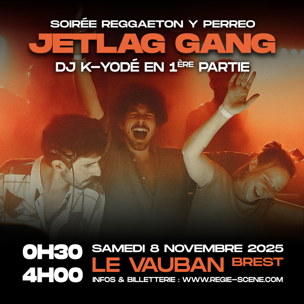 Jamais 2 sans 3 ! Le collectif JetLag, célébrant les musiques latines et hispaniques, est de retour à Brest à l’automne. Entre Reggaeton, Dembow et Neoperreo, préparez-vous à perrear sur la crème du Movimiento. Au programme le samedi 8 novembre 2025 : un mix caliente du JetLag Gang (Djs & perfomeur.ses) et un show endiablé au Cabaret Vauban !